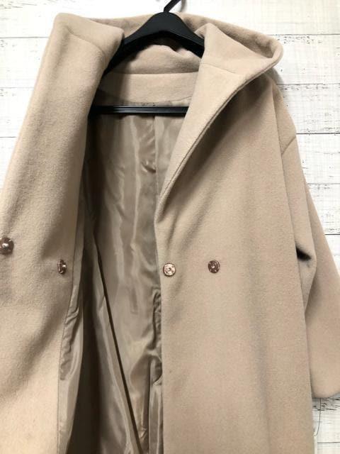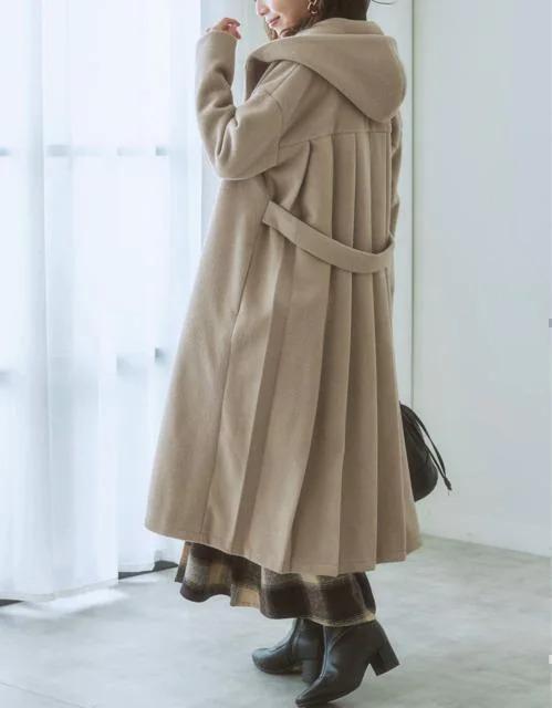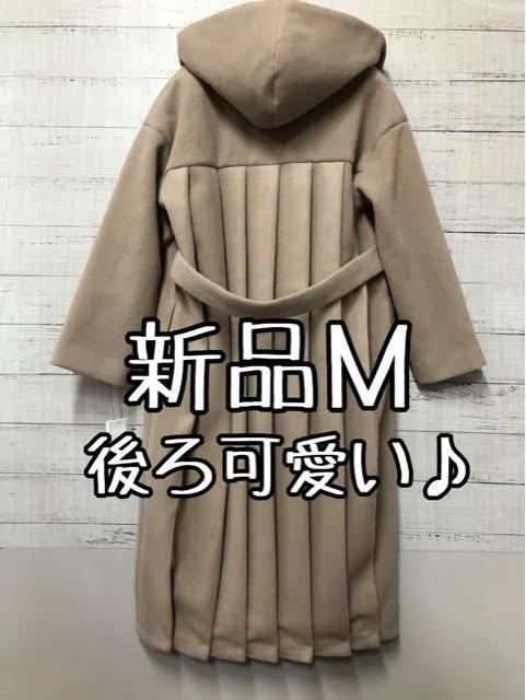 新品☆M♪グレージュ系♪後ろプリーツ可愛いロングコート♪きれいめ☆e387