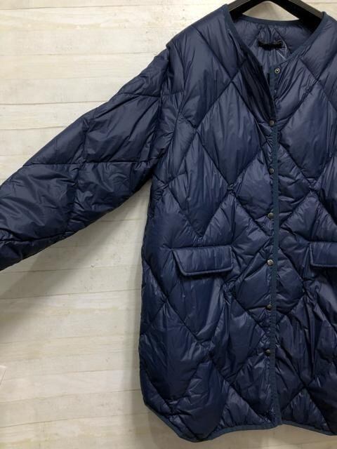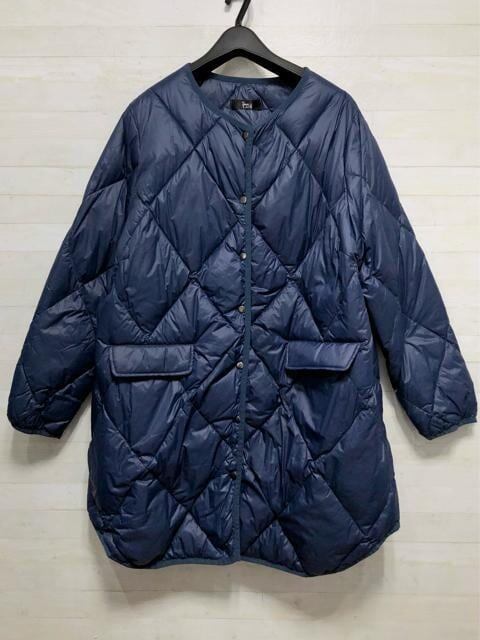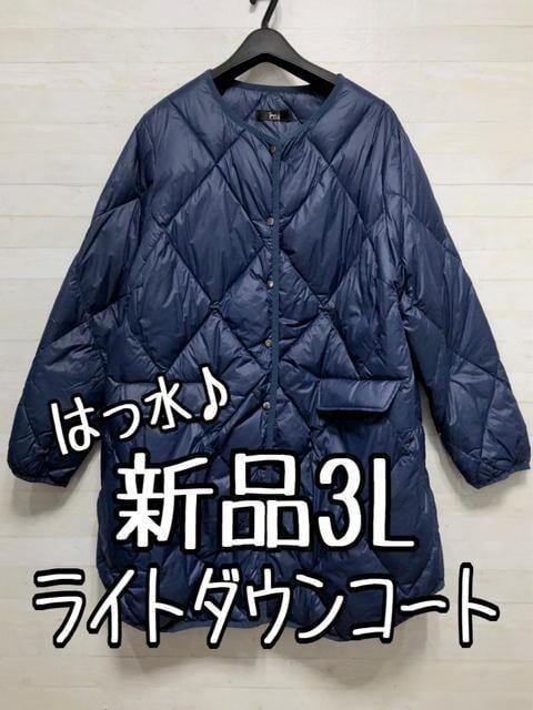 新品☆3L紺系♪ライトダウンコート♪ノーカラーコート☆p770