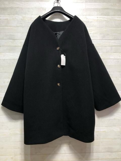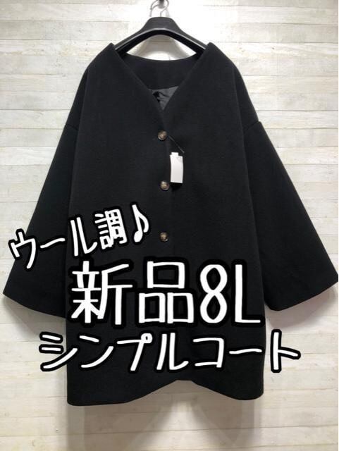 新品☆8L♪黒系♪ノーカラーきれいめコート♪フェイクウール☆A315