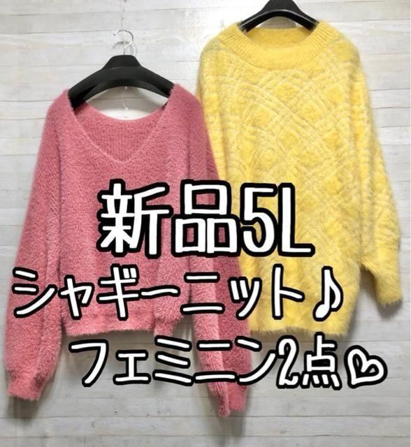 新品☆5L♪フェミニンふわふわニット2枚セット♪1万円以上☆p807