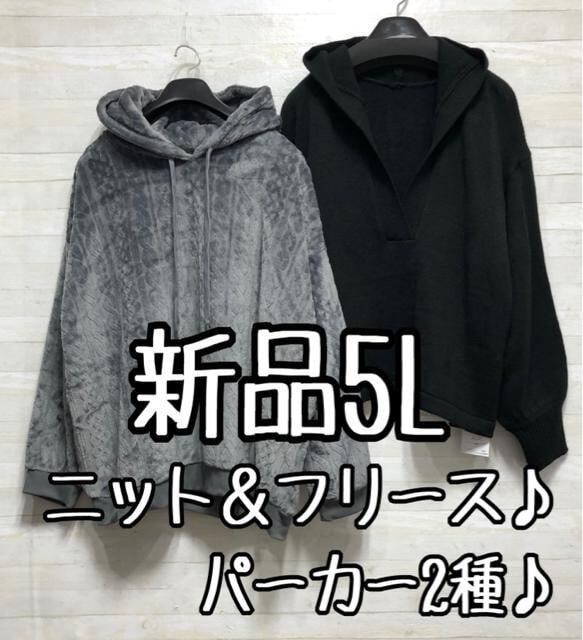 新品☆5L♪Vネックニット&ふわぬくフリース♪パーカー2種セット☆p809