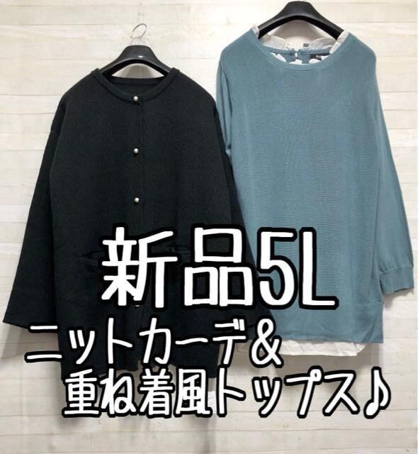 新品☆5L♪フェミニンニット2枚♪カーデ&重ね着風☆p810
