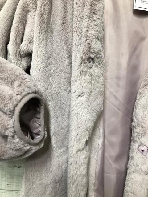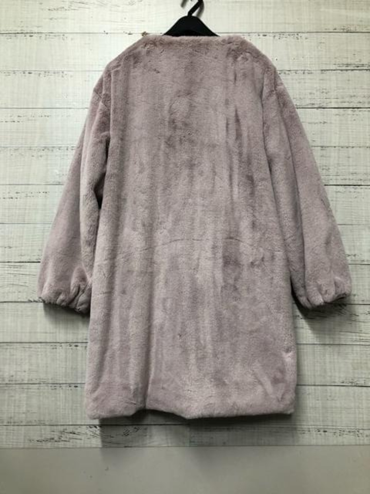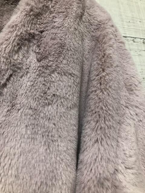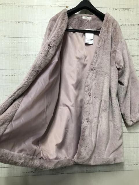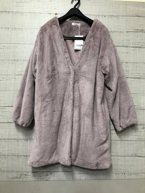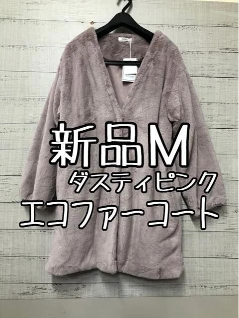 新品☆M♪ダスティピンク系♪ふわふわエコファーのノーカラーコート♪☆e363