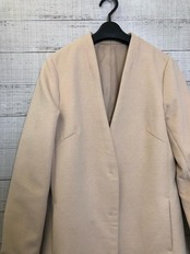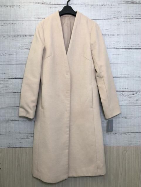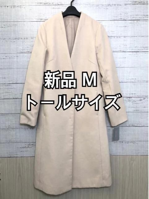 新品☆Mトールサイズ♪ベージュ系♪ノーカラーロングコート☆p126