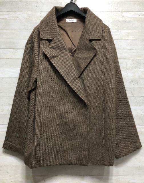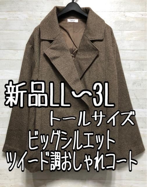 新品☆LL3Lトール♪茶系♪ビッグシルエットコート♪ツイード調〇p859