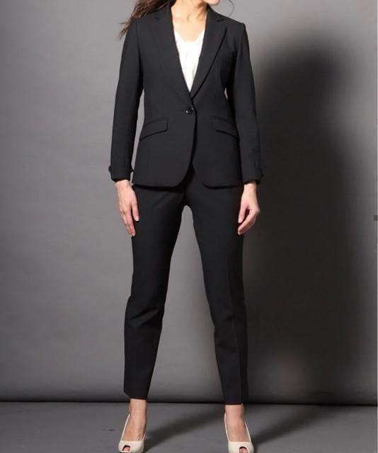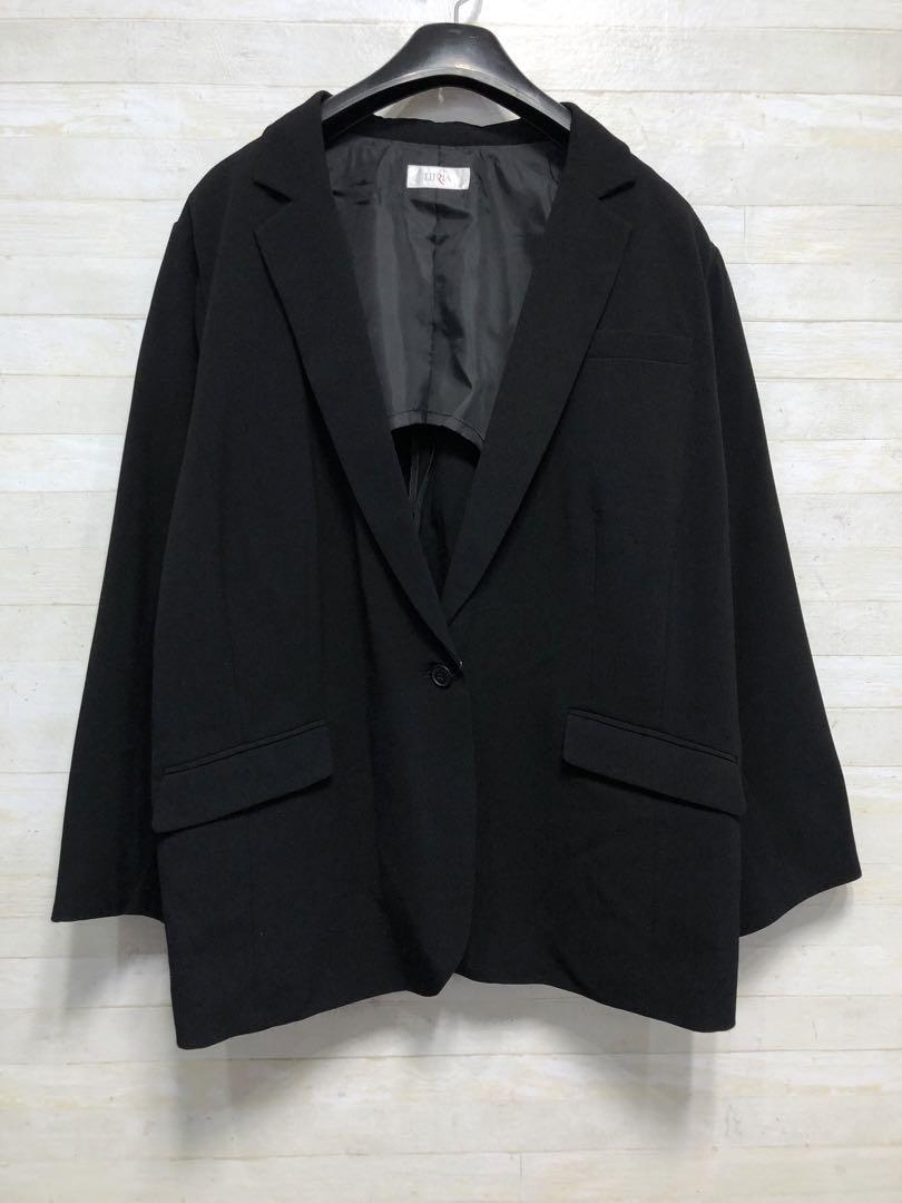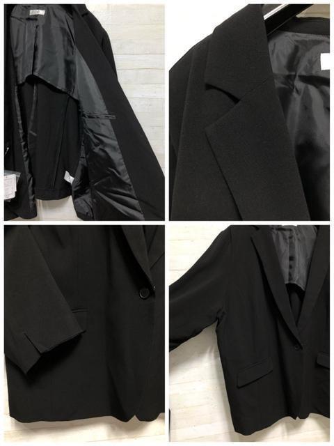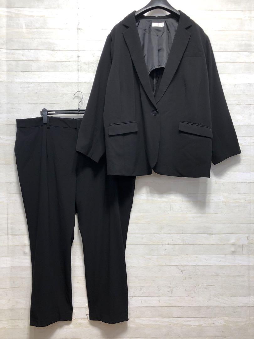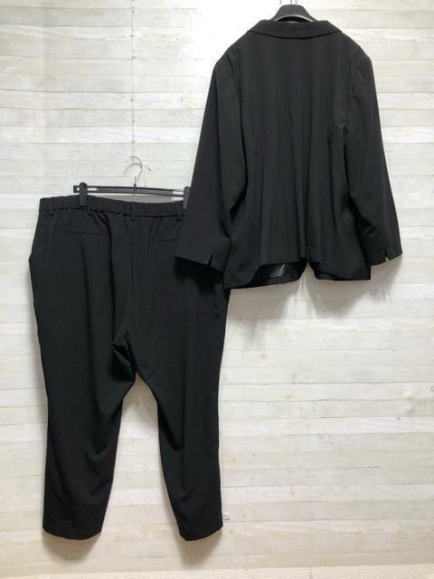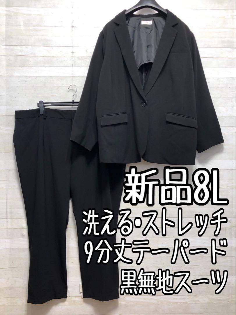 新品☆8L黒系無地ストレッチ洗えるテーパードパンツスーツ〇G273