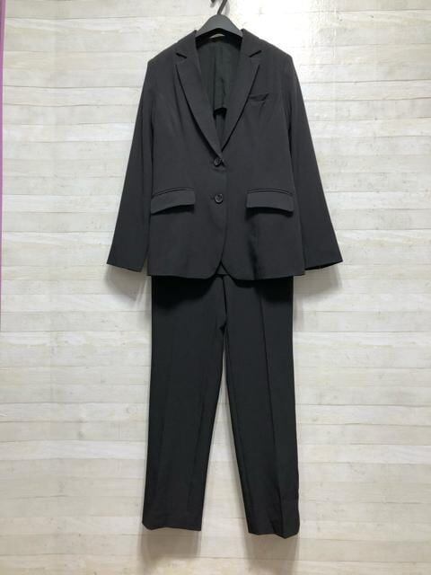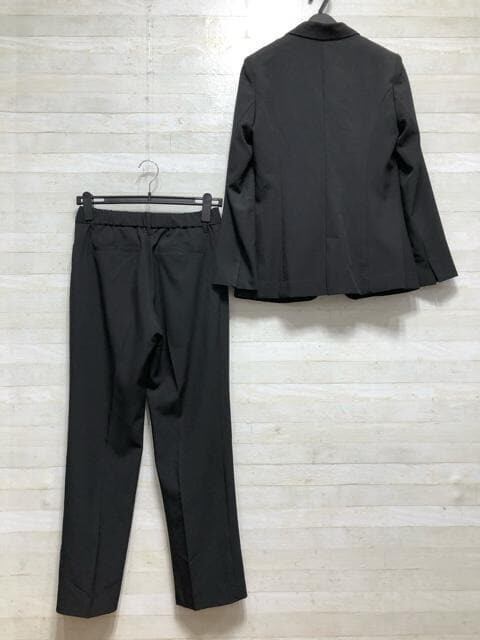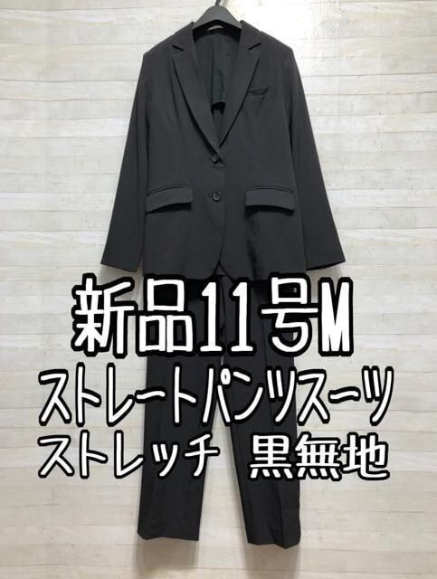 新品☆11号M黒系無地♪ストレッチ素材♪ストレートパンツスーツ〇p916
