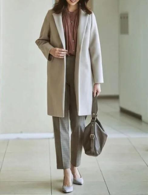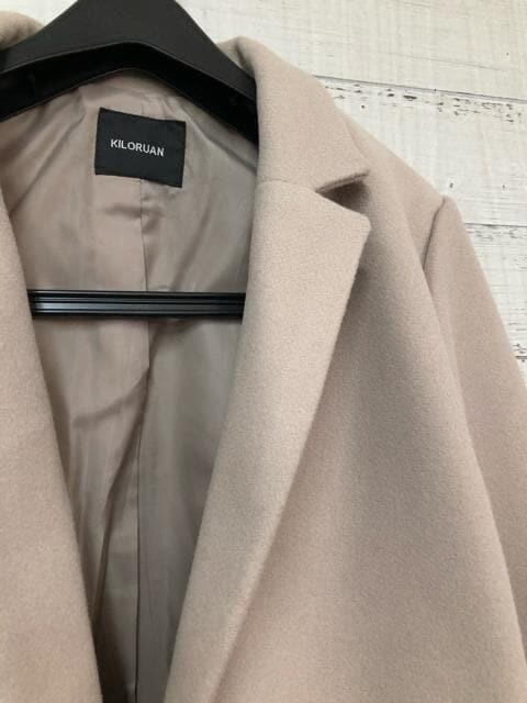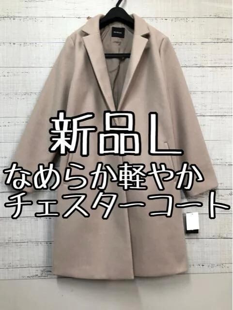 新品☆Lサイズ♪ベージュ系♪ウール調なめらかチェスターコート♪軽やか♪☆e260