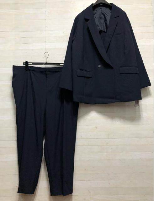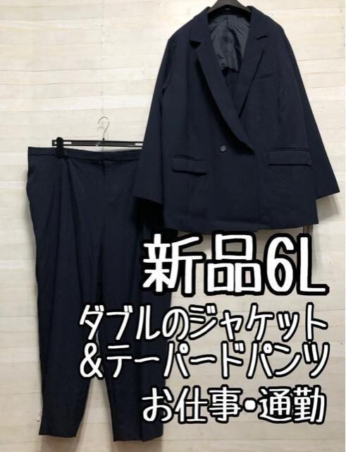 新品☆6L紺系♪ダブルのジャケット&テーパードパンツスーツ♪お仕事〇p920