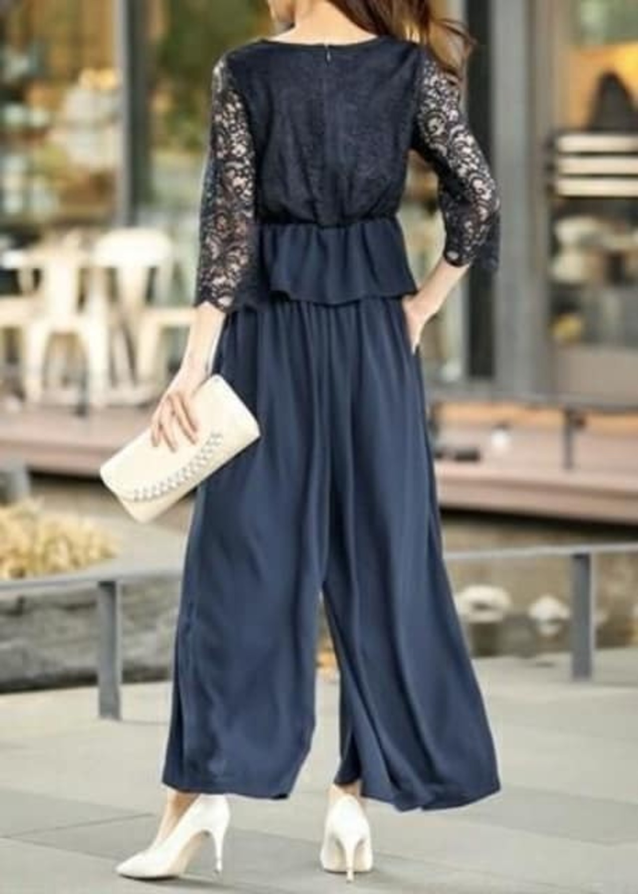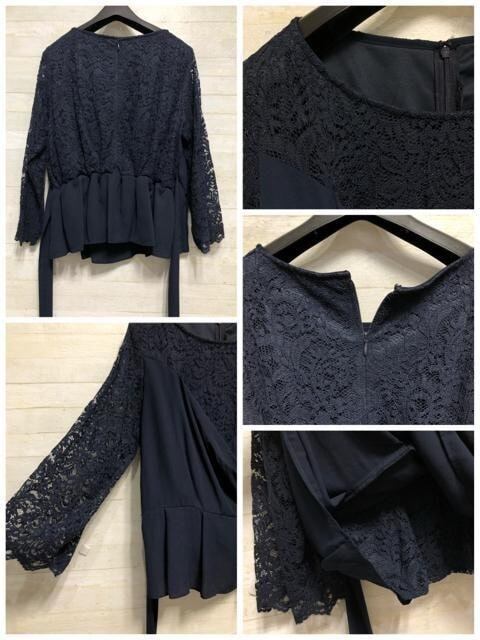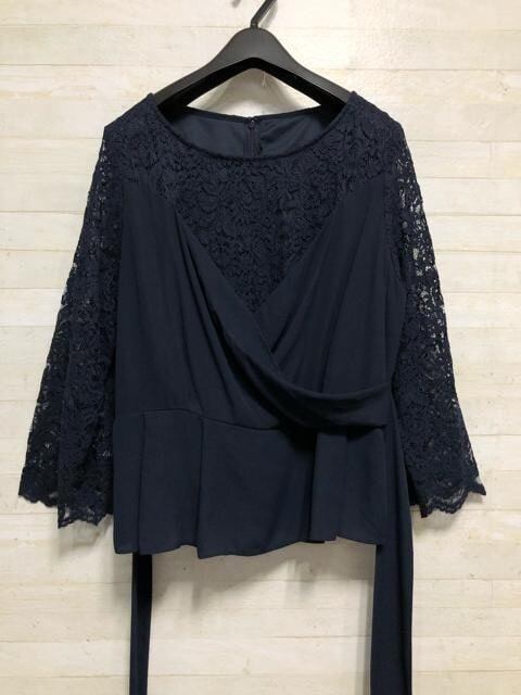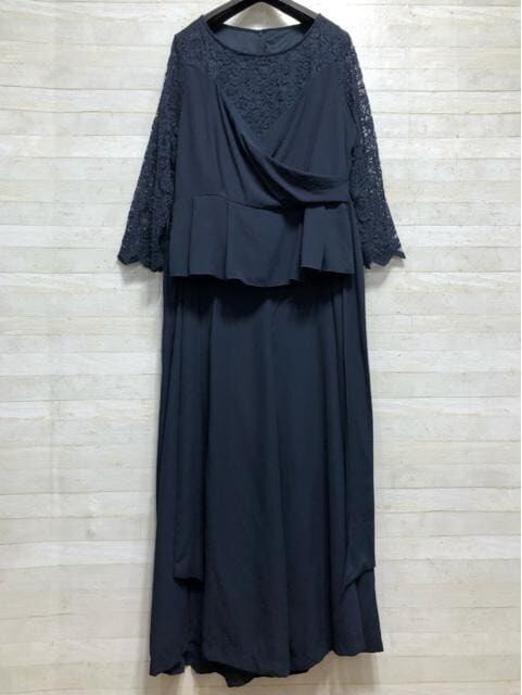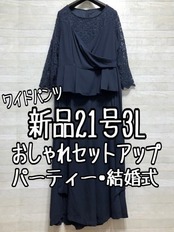 新品☆21号3L紺系♪レース袖おしゃれワイドパンツセットアップ〇p937
