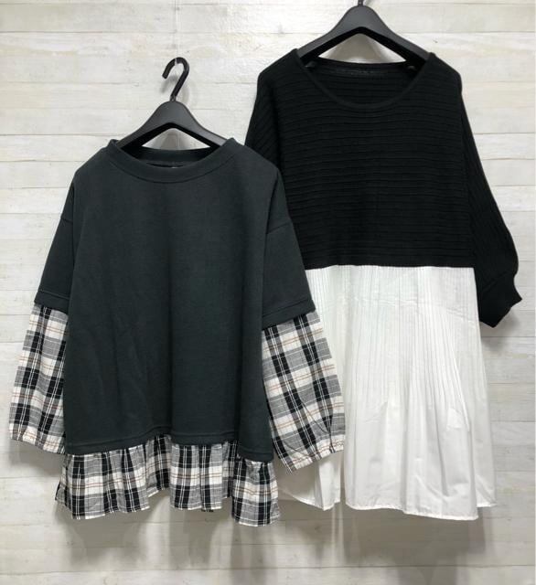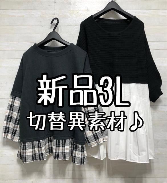 新品☆3L♪異素材切替デザイン♪おしゃれトップス2枚セット〇p939