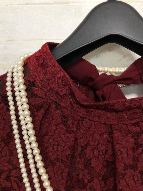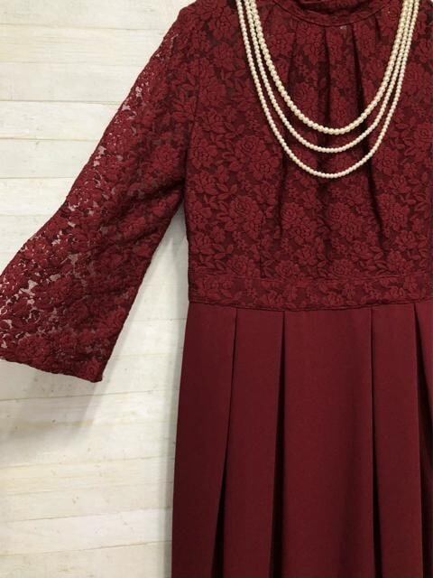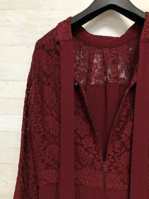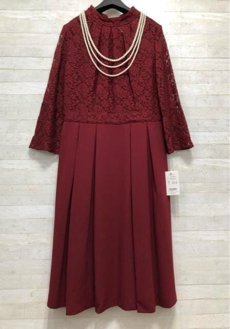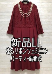 新品☆LL♪後ろリボンおしゃれレース切替ワンピースドレス結婚式〇A375