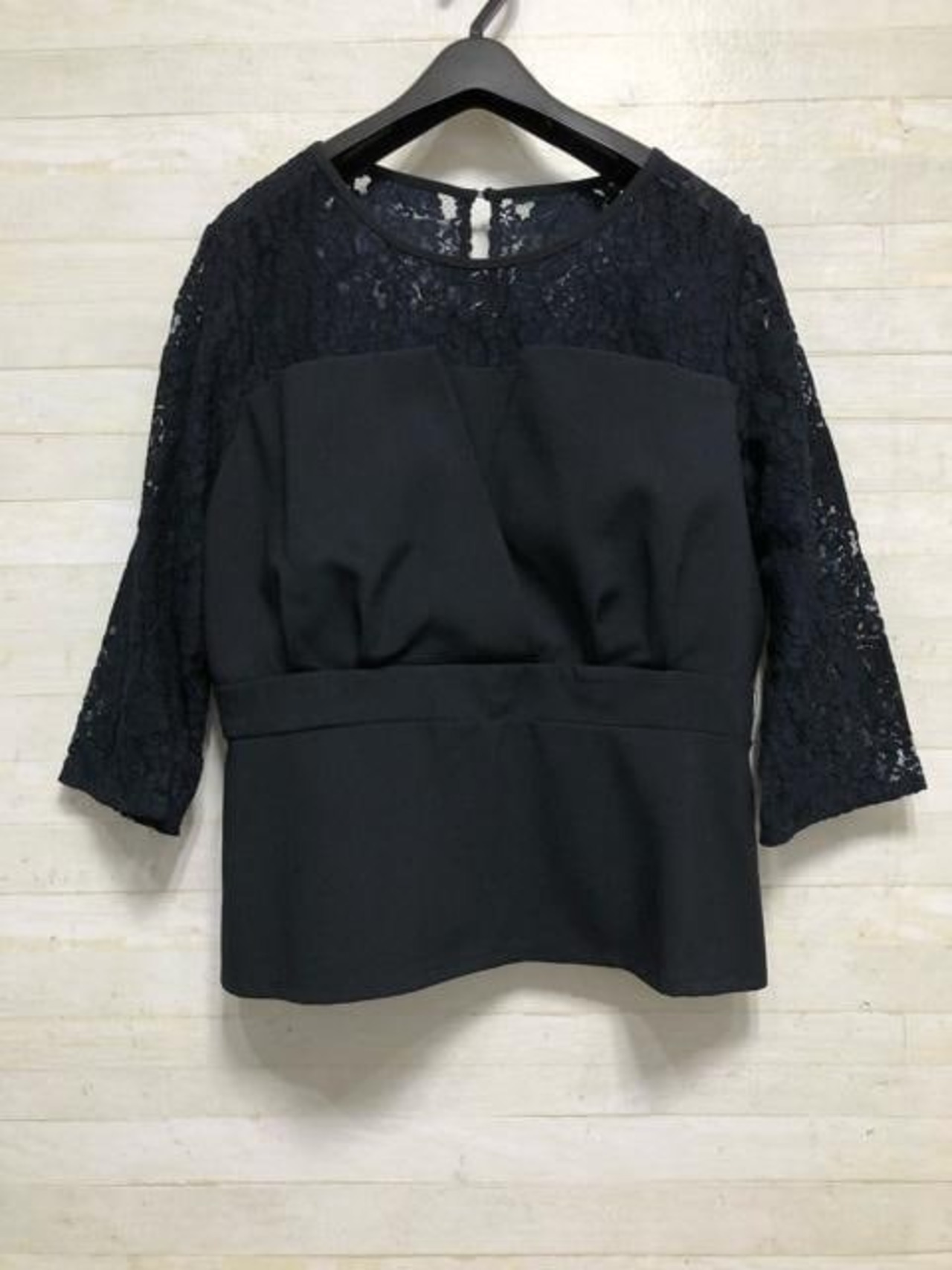 上品なベアトップ風レースブラウスと