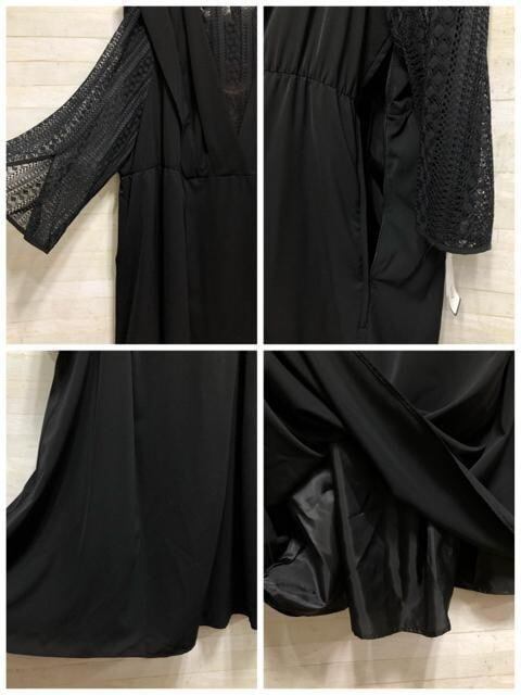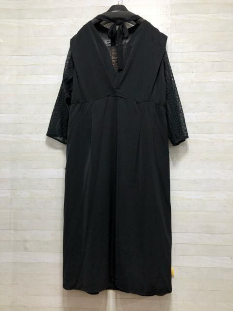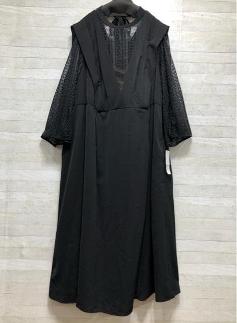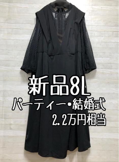 新品☆8L黒系♪うしろリボンかわいい♪レースデザインワンピースドレス〇p927