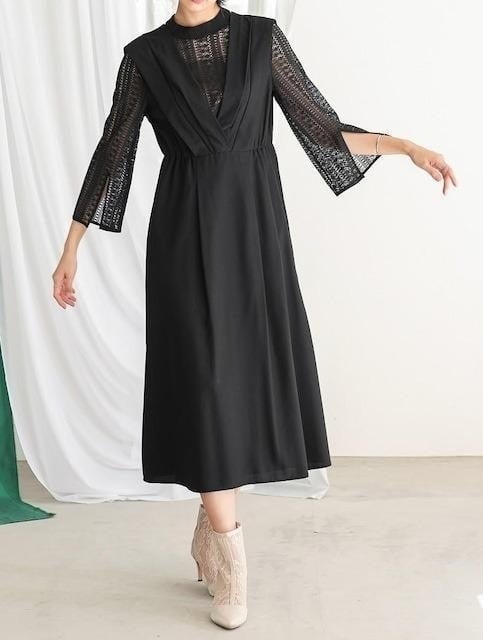 レース切替おしゃれワンピースドレス