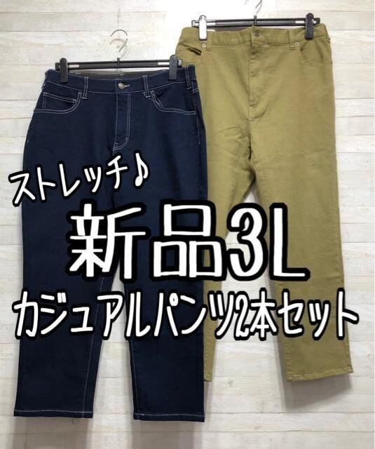 新品☆3L伸び伸びストレッチ♪カジュアルパンツ2本セット〇A381
