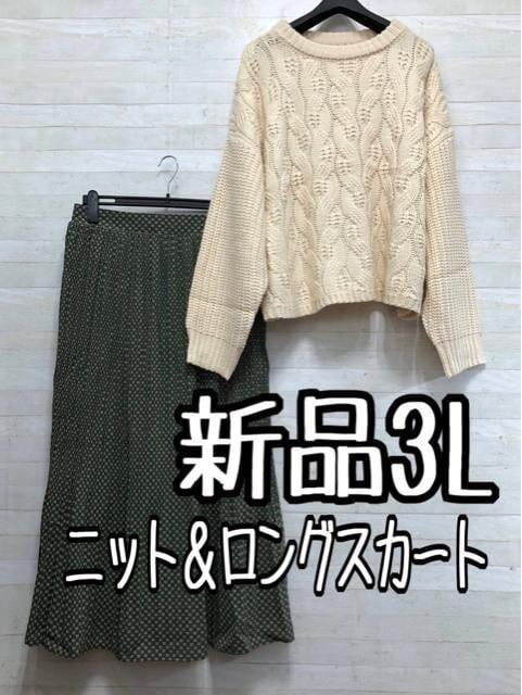 新品☆3L♪お出かけコーデにも♪ニット&ロングスカート〇A383