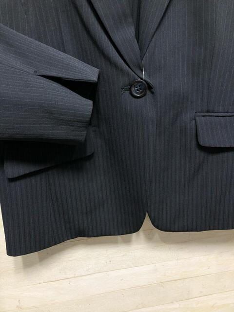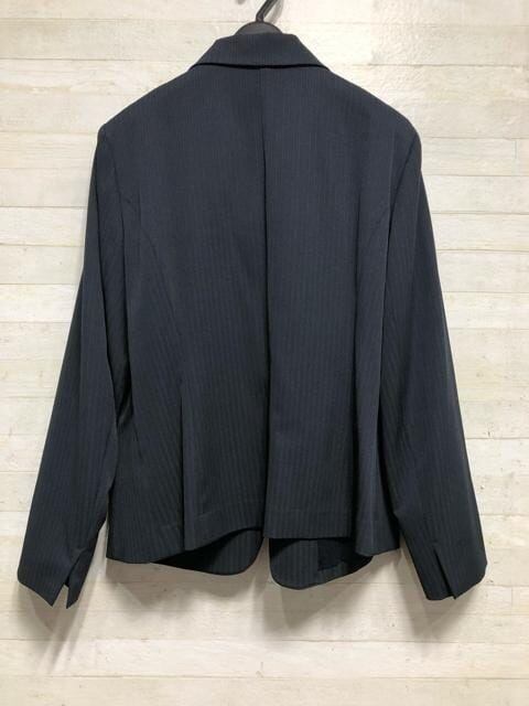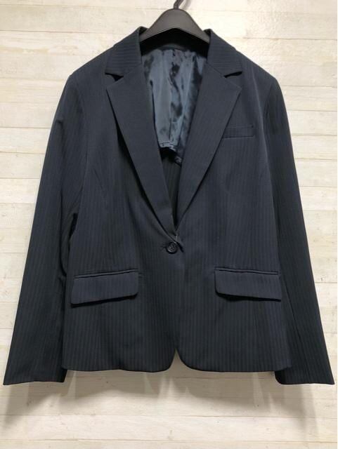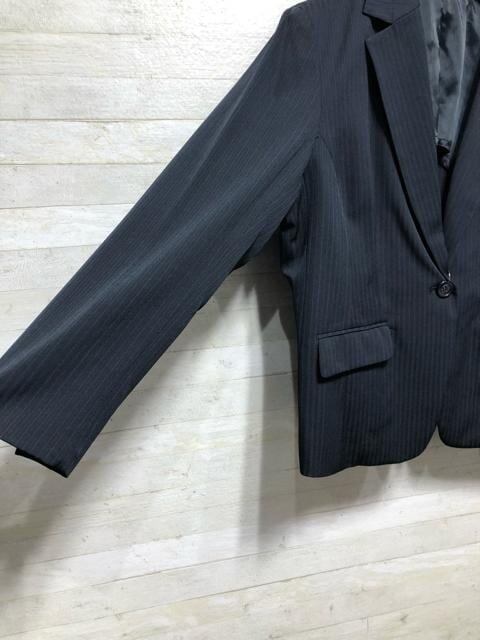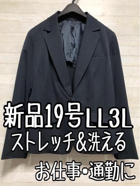 新品☆19号LL3L紺系ストライプ柄ストレッチ素材テーラードジャケット〇p951
