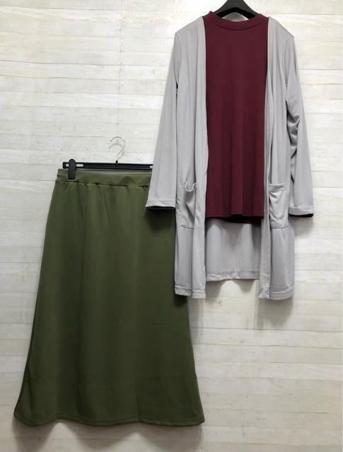 新品☆3Lカーデ&ロンT&ロングスカート♪おしゃれセット〇A417