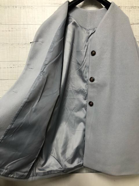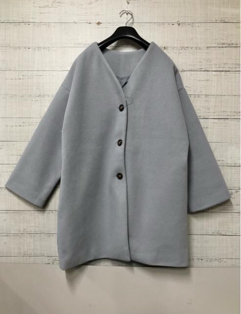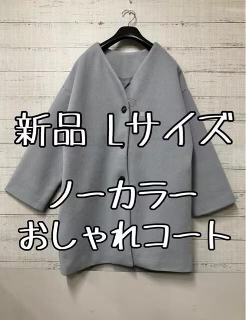 新品☆Lサイズ♪サックスブルー系♪ノーカラーおしゃれコート♪☆s198
