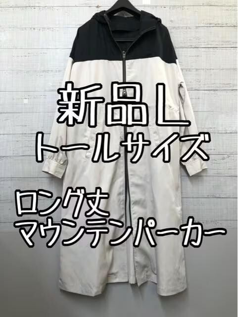 新品☆Lトールサイズ♪黒ベージュ系♪うす軽ロング丈マウンテンパーカー☆☆s723