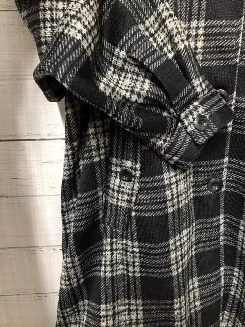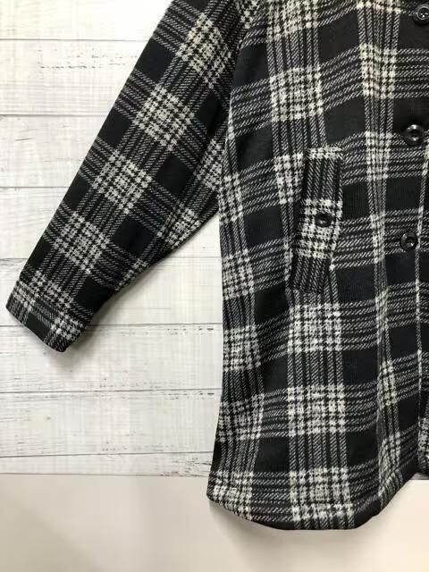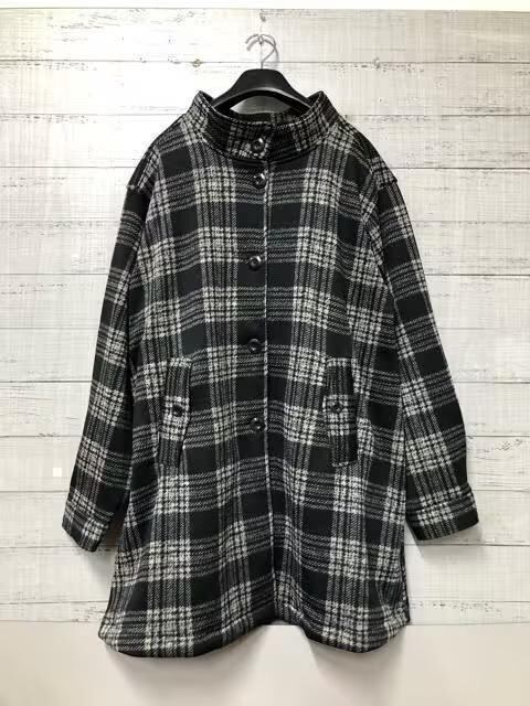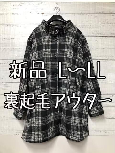 新品☆L~LL黒系チェック裏起毛やわらかアウターゆったりジャケットコートs197