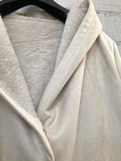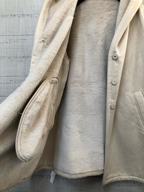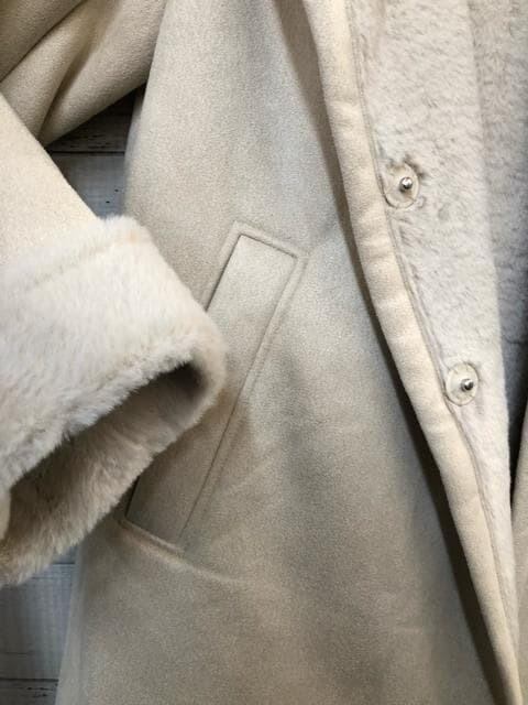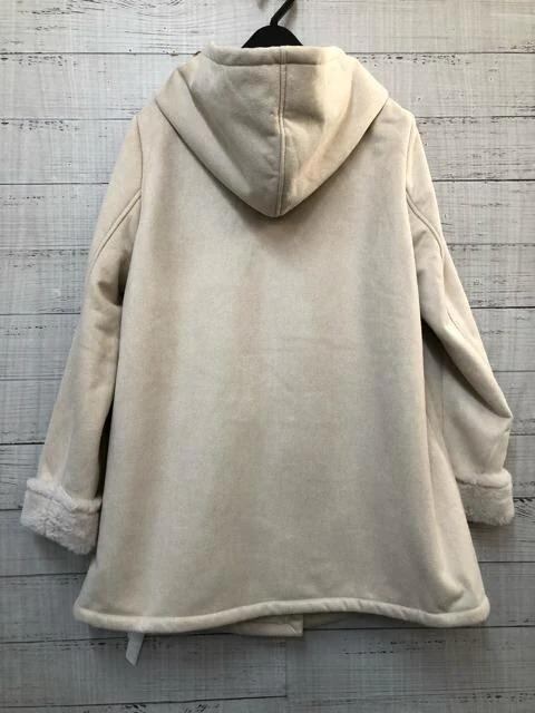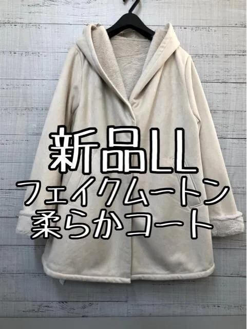 新品☆LL♪ベージュ系♪フェイクムートンやわらかコート♪フード付き♪☆e272