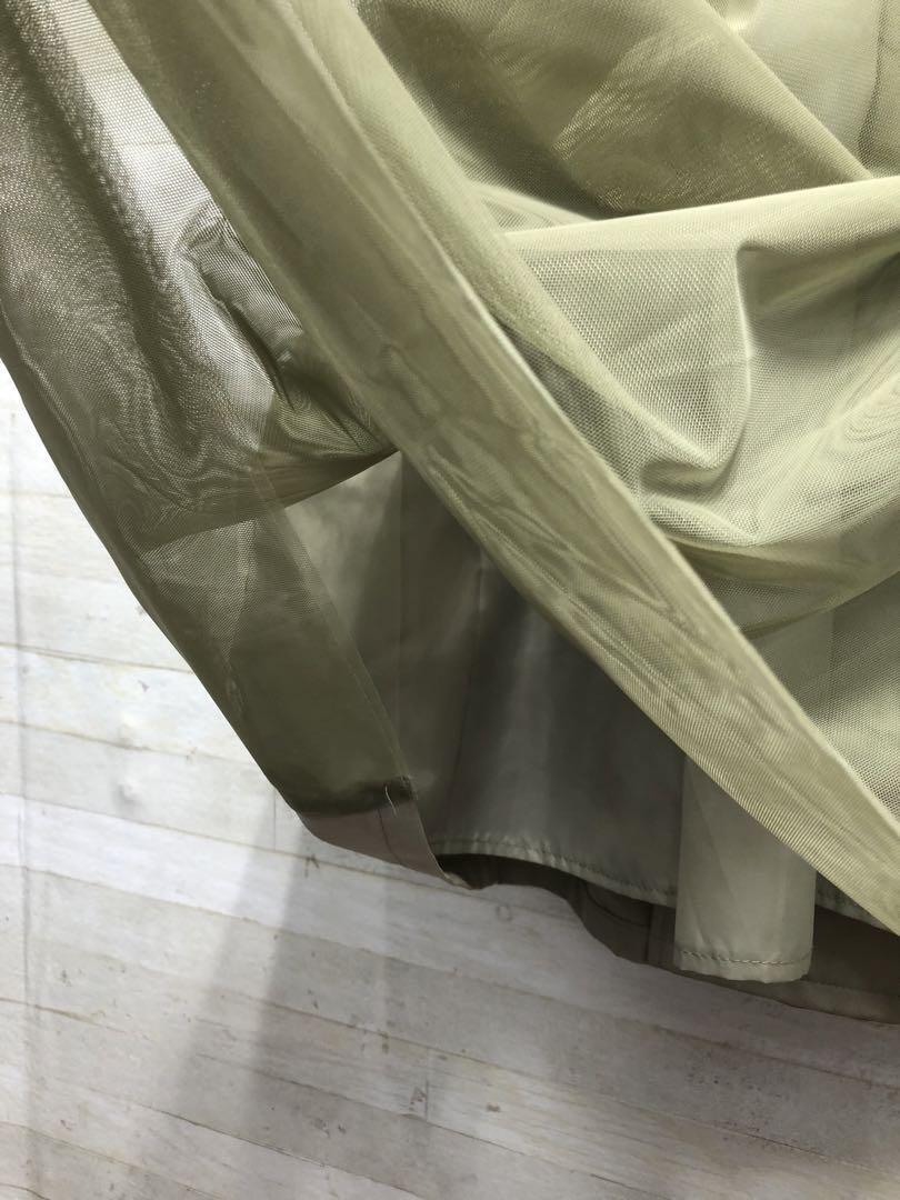 新品☆LL♪オリーブ系♪上品なオシャレ♪後ろチュールのトレンチコート〇D598