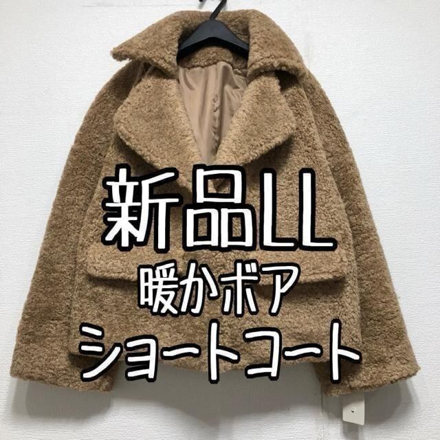 新品☆LL♪ブラウン系♪ふわもこあったかボアのショートコート☆w579