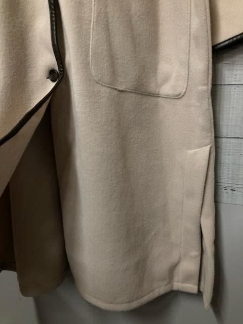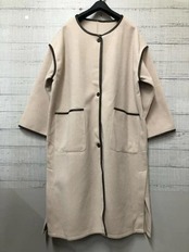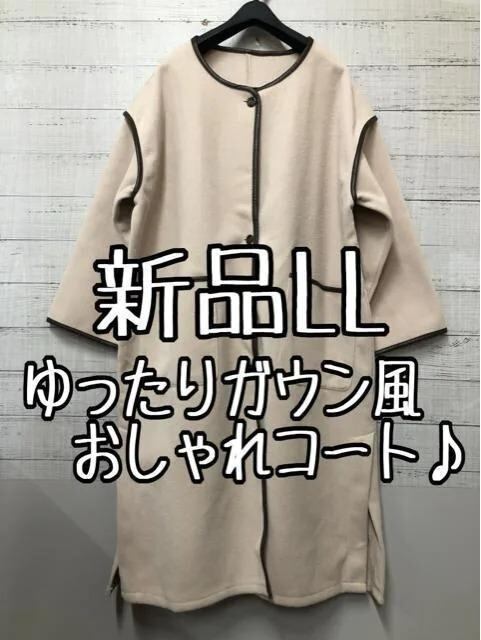 新品☆LLベージュ系ゆったりガウン風おしゃれなロングコート♪ノーカラー☆e679