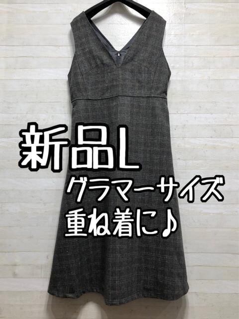 新品☆Lグラマーサイズ♪おしゃれジャンスカ♪お出かけ・きれいめ〇A435