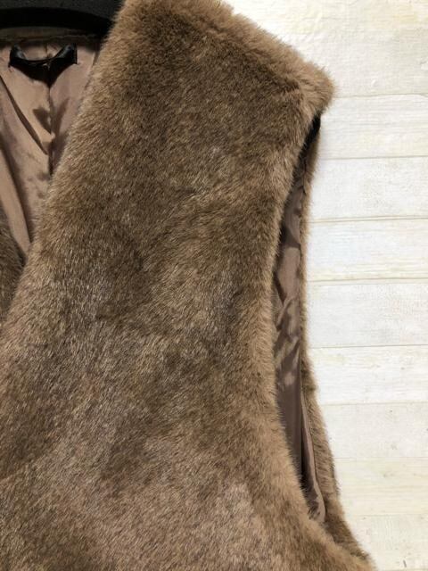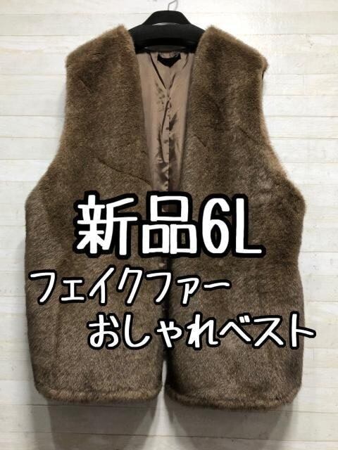 新品☆6L♪茶系フェイクファーおしゃれベスト〇A439