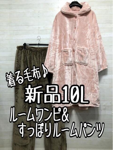 新品☆10L♪もこもこ着る毛布あったかルームワンピ&パンツ〇A470