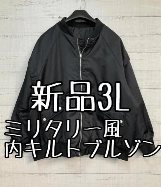 新品☆3L♪黒系♪ミリタリーデザインのブルゾン♪内キルティング♪☆e251