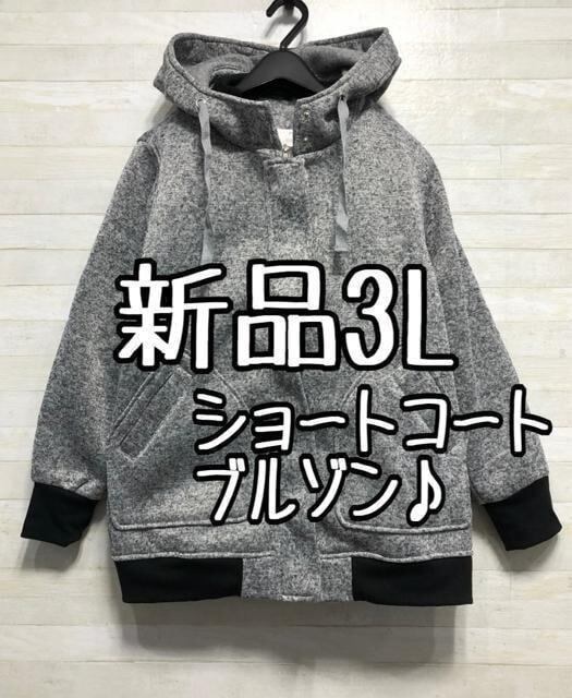 新品☆3L♪グレー系♪フード付き軽量ブルゾン♪☆p185