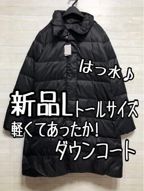 新品☆Lトール黒系♪あったかダウンコート♪フード付♪〇A311