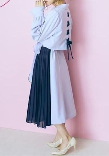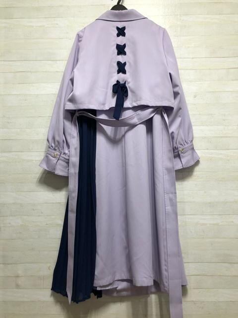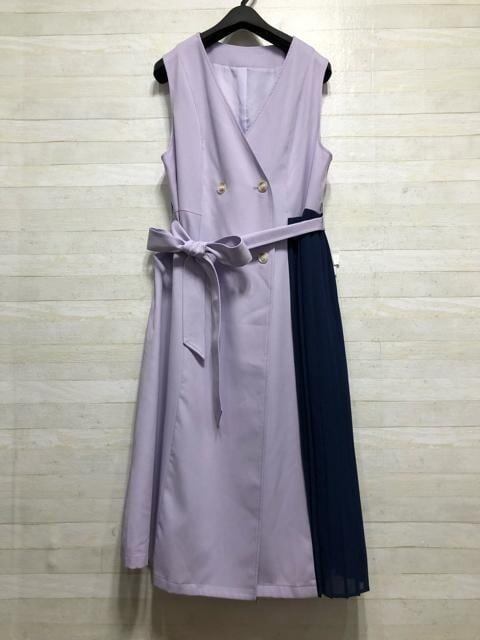 新品☆LLパープル系♪後ろリボン&切替プリーツ♪セットアップ♪2.1万円☆p590