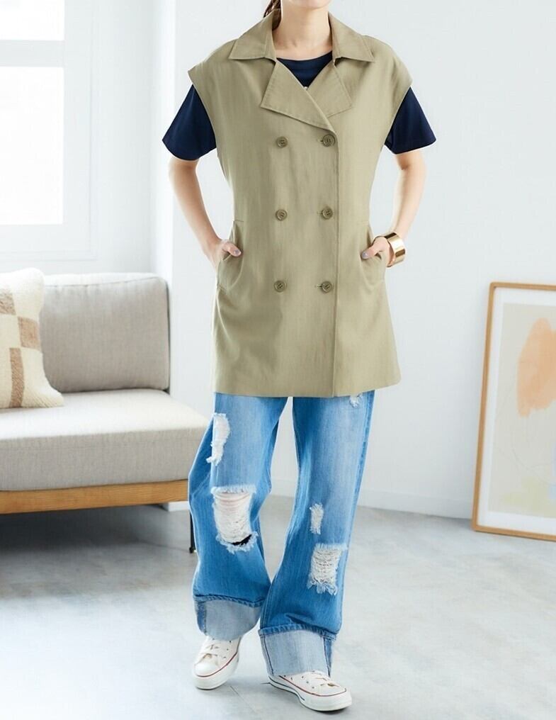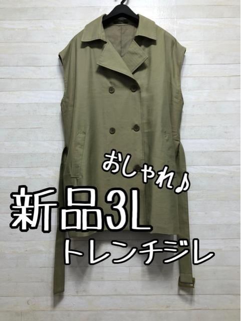 新品☆3Lカーキ系♪おしゃれトレンチジレ♪ダブルボタン〇p489