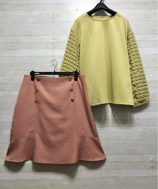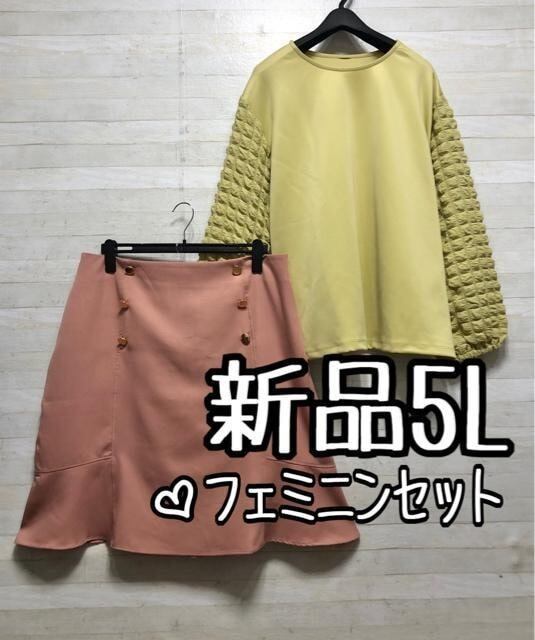 新品☆5L♪ぽこぽこ袖&金色ボタン♪フェミニンセット♪わけあり〇A532