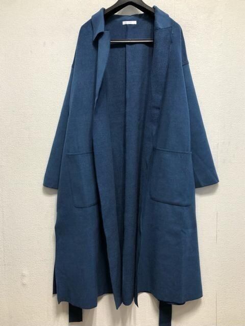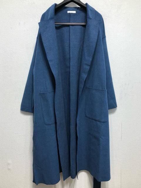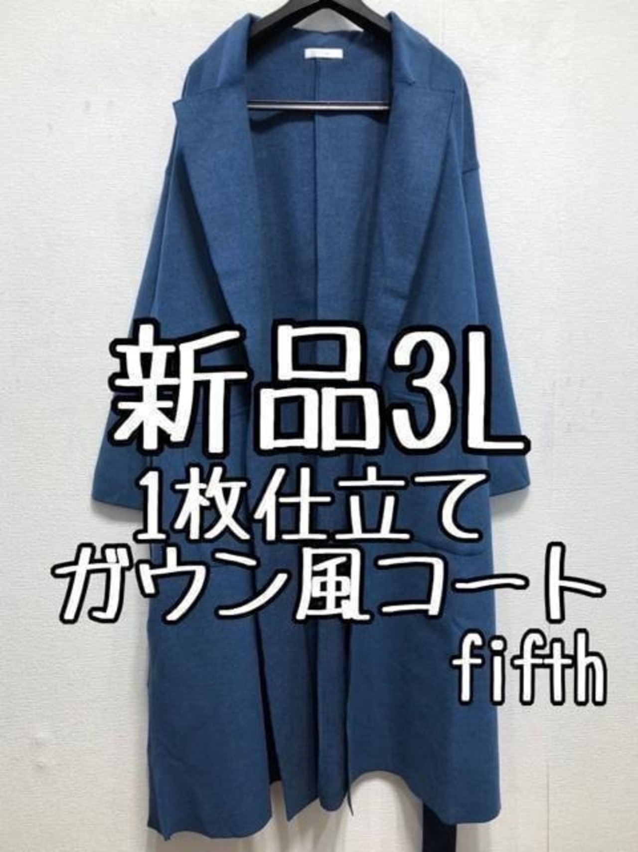 新品☆3L♪fifthブルー系♪スリット入きれいめガウン風ロングコート☆z468