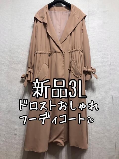 新品☆3L♪ベージュ系♪ドロストおしゃれフーディうす手コート☆r744