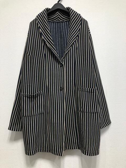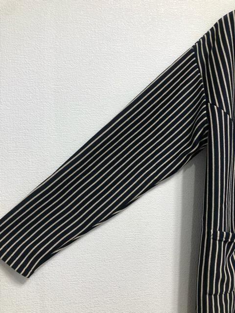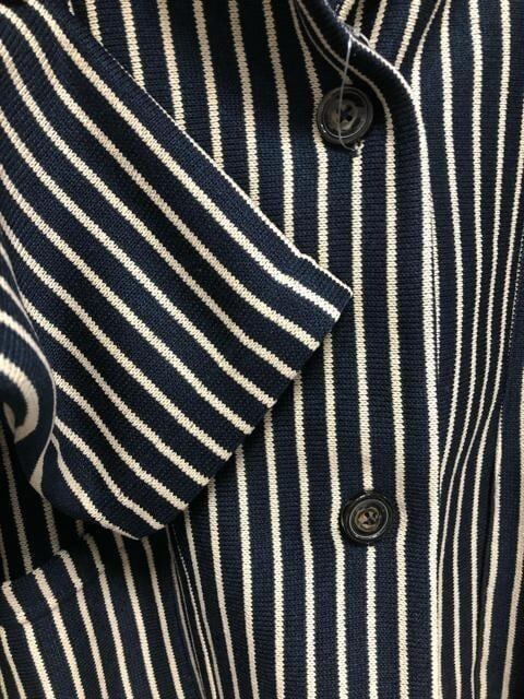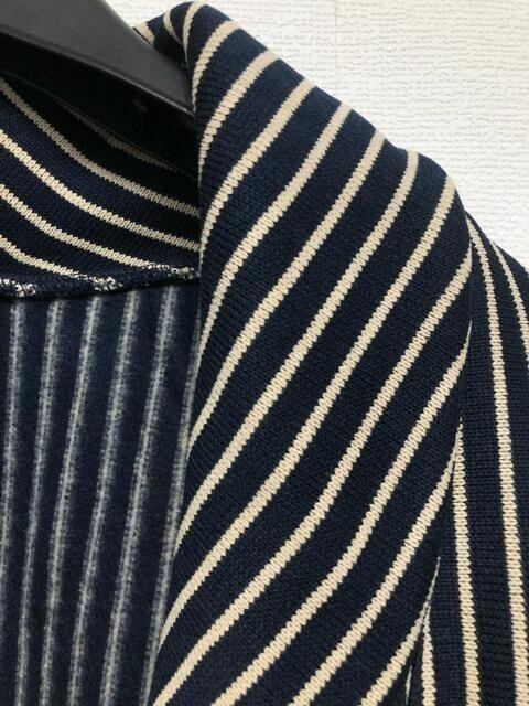 新品☆3L♪紺系ストライプ柄やわらかニット風おしゃれロング丈ジャケット☆w920