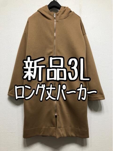 新品☆3L茶系♪やわらかロング丈カットソーパーカー☆w645