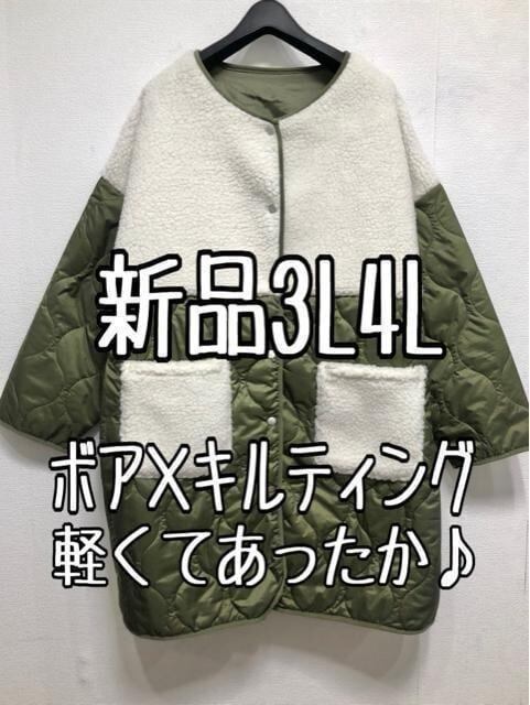 新品☆3L4L♪カーキ系♪ボア×キルティング♪軽量あったかアウター☆z633