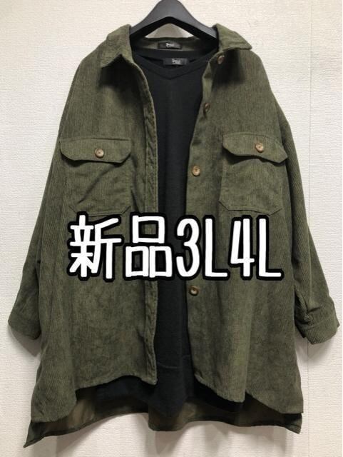新品☆3L4L♪黒系カットソー&カーキ系コーデュロイジャケット☆z885