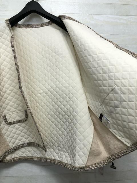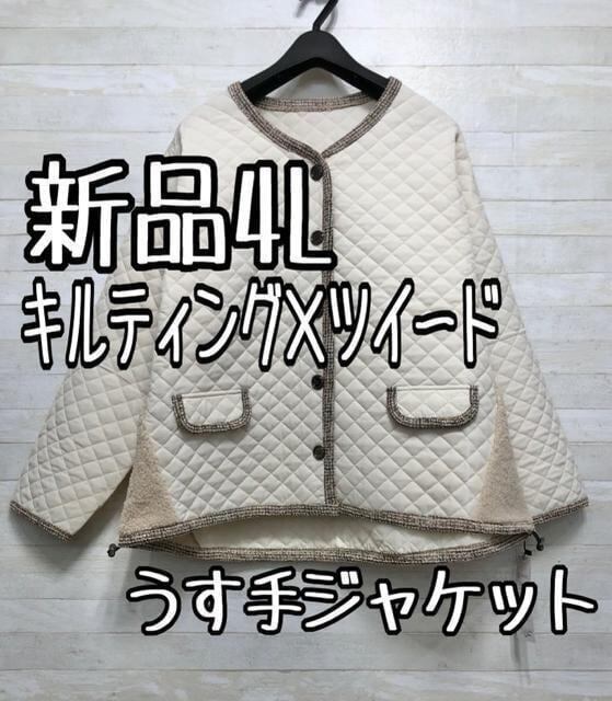 新品☆4L♪ツイード調パイピングおしゃれ切替キルトジャケット☆p350