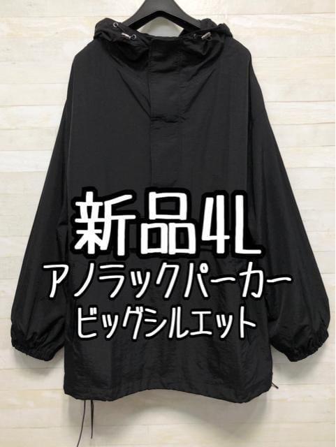 新品☆4L黒系♪シャカシャカ素材ナイロンパーカー♪☆f758