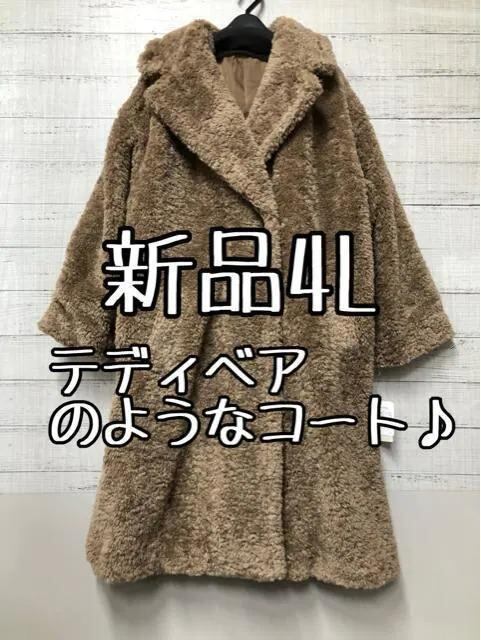 新品☆4L♪ブラウン系♪テディベアのようなもこもこボアのロングコート♪☆e485