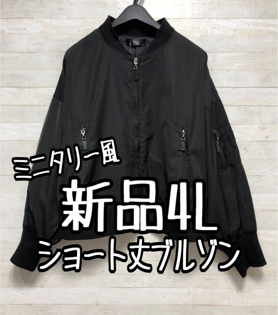 新品☆4L 黒系♪うす手素材♪短め丈ブルゾン♪ミリタリー風〇D629