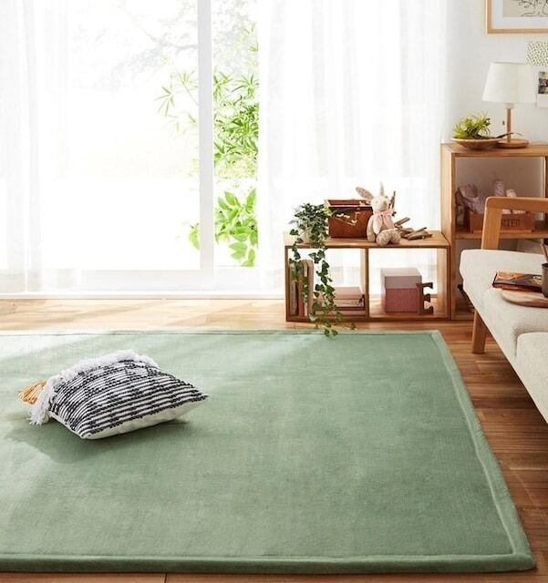 新品☆130×185cm♪グリーン系♪はっ水ウレタン入りボアラグ〇p997